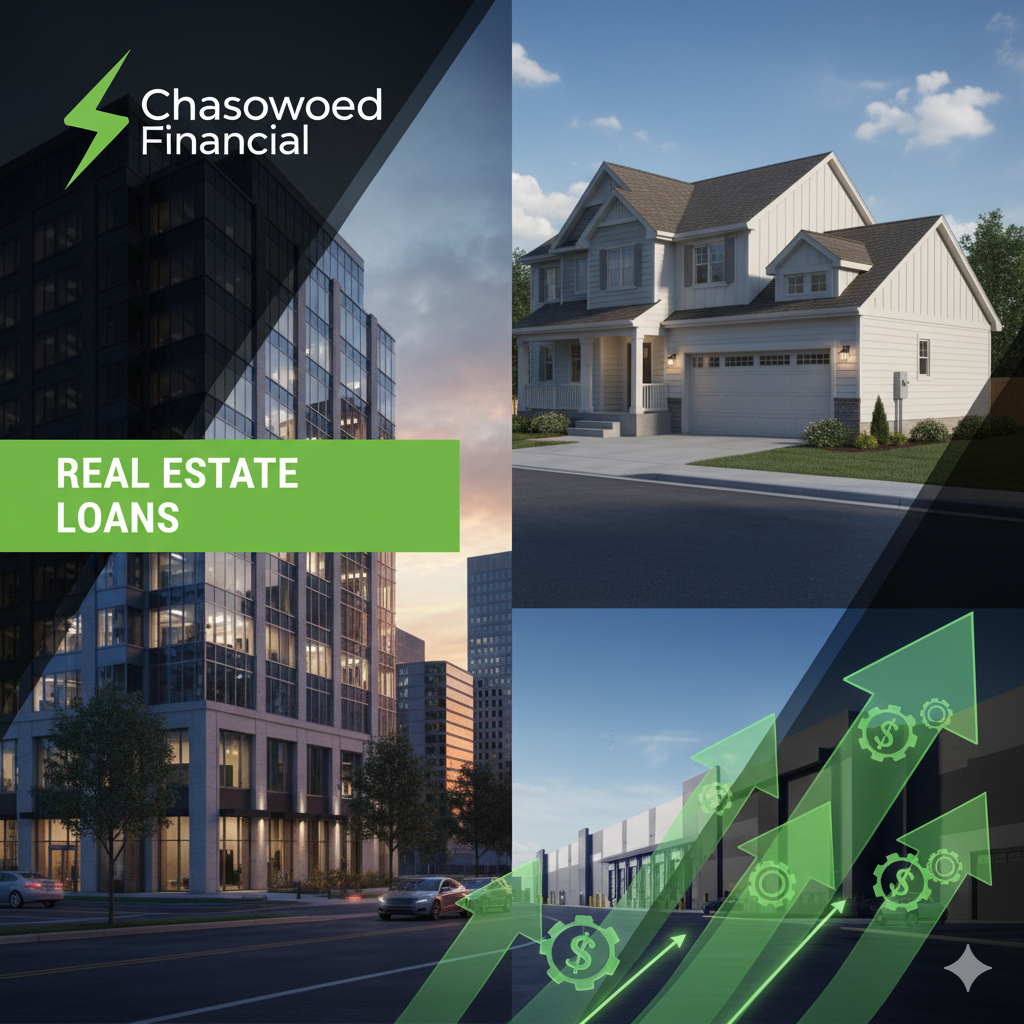 Chasewood Financial delivers comprehensive commercial real estate loan solutions enabling businesses to acquire, develop, and refinance properties nationwide. Our flexible programs accommodate diverse property types and business situations across all industries. Professional real estate loan expertise ensures companies receive optimal financing structures supporting ownership objectives and wealth building goals.