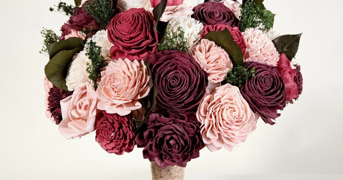Wine, Blush, Red, and Ivory Sola Wood Flower Bouquet with Greenery - Bridal  Bridesmaid Toss | MakerPlace by Michaels